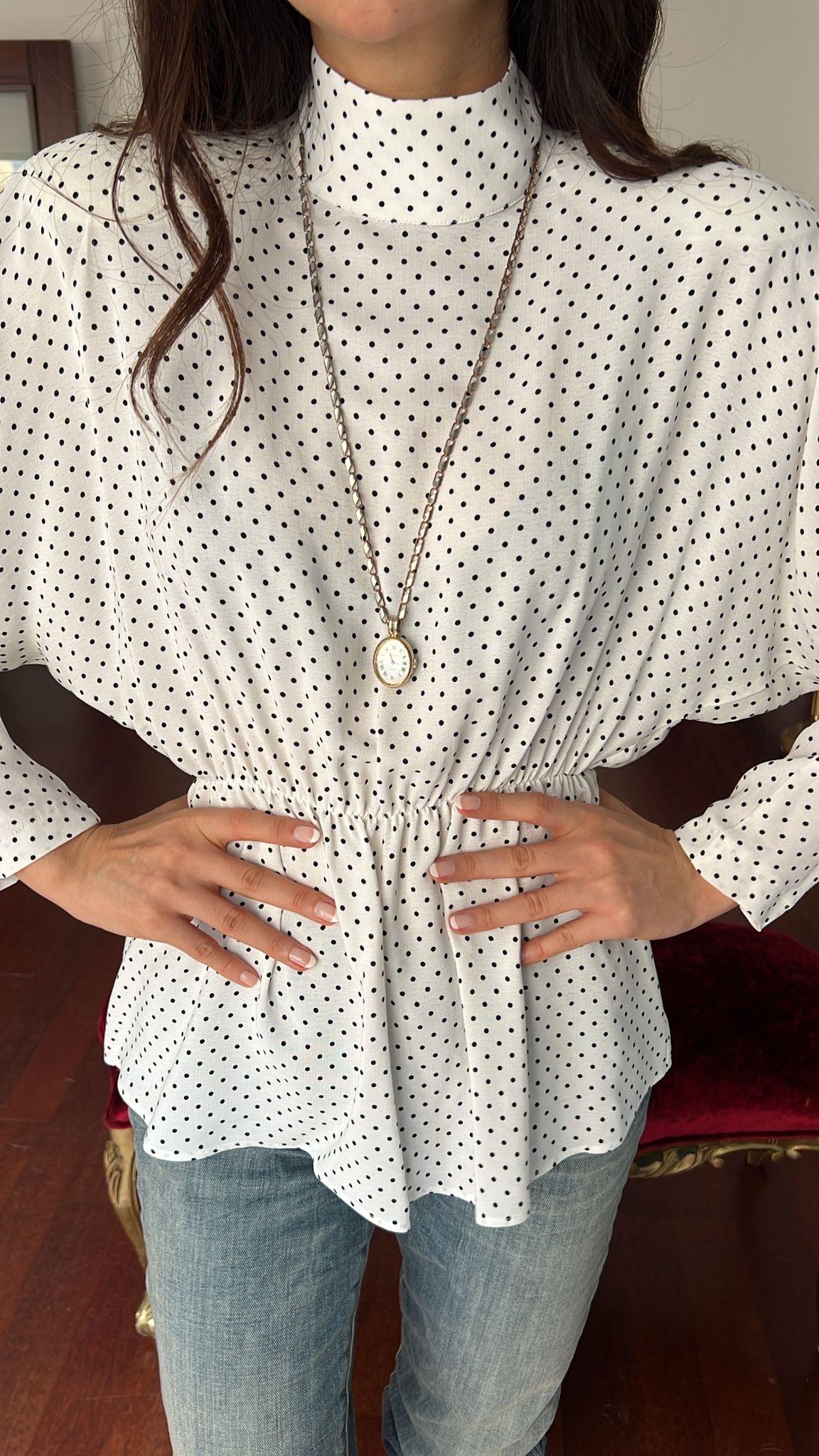 ''Handan'' Peplum Beyaz Üzeri Siyah Puanlı Bluz