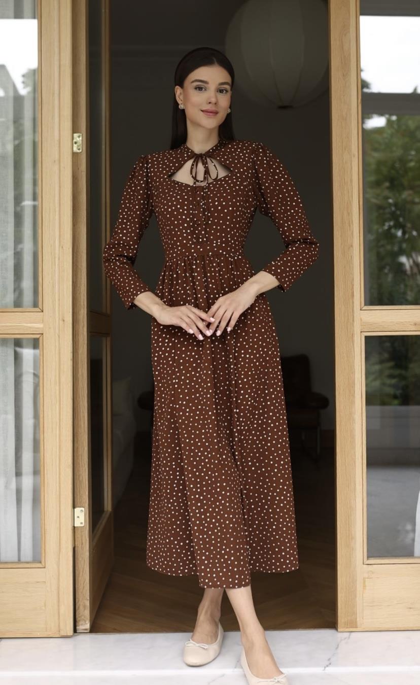 Elbisenin boyu 125 cm’dir. Kumaş cinsi: Maroken viskon.
