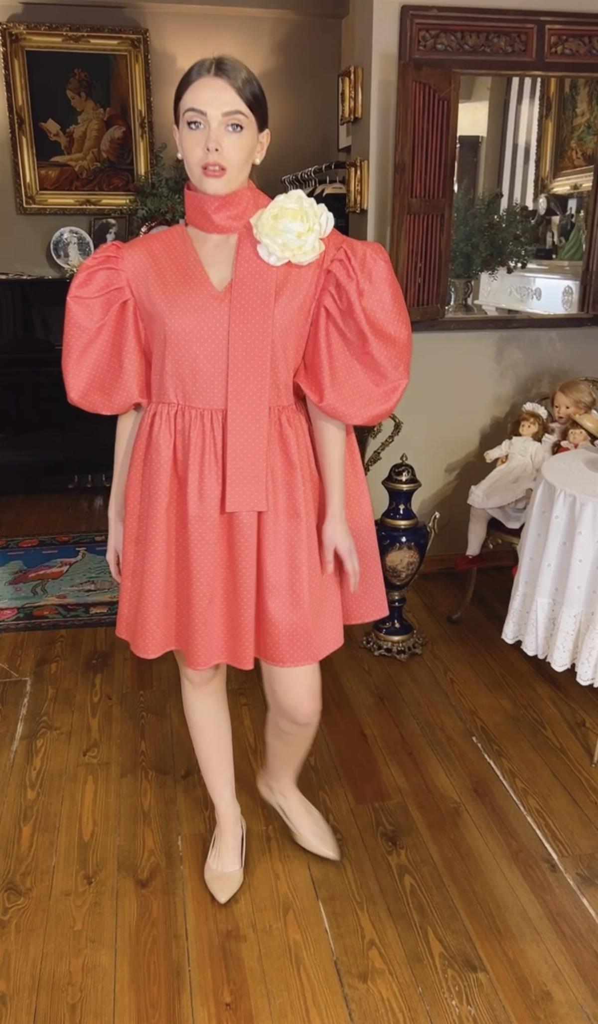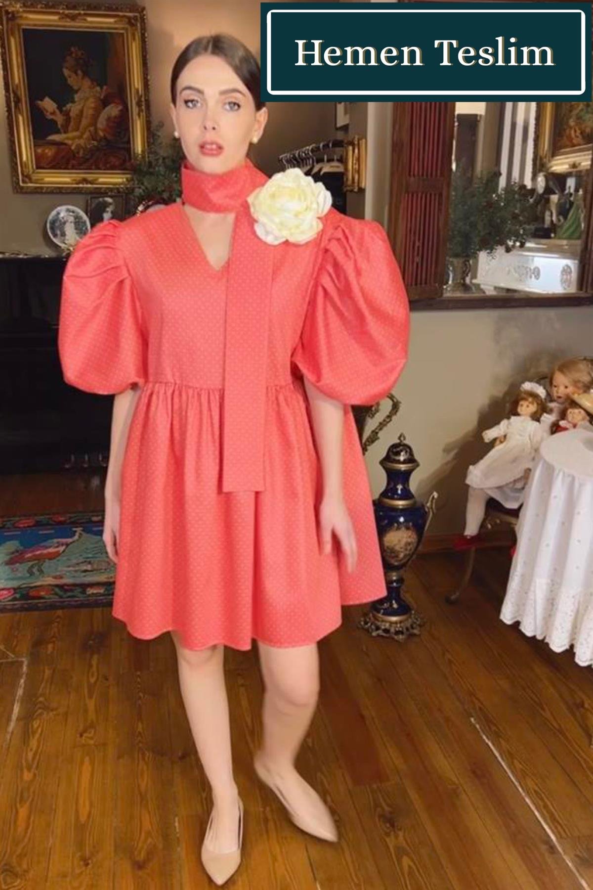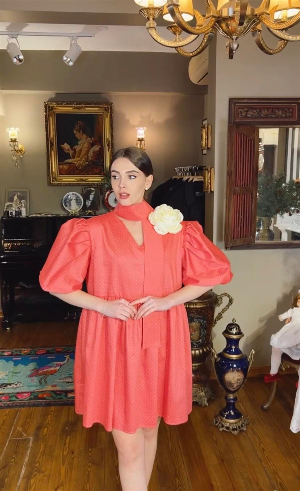 Pembe Puanlı Balon Kol Piknik
